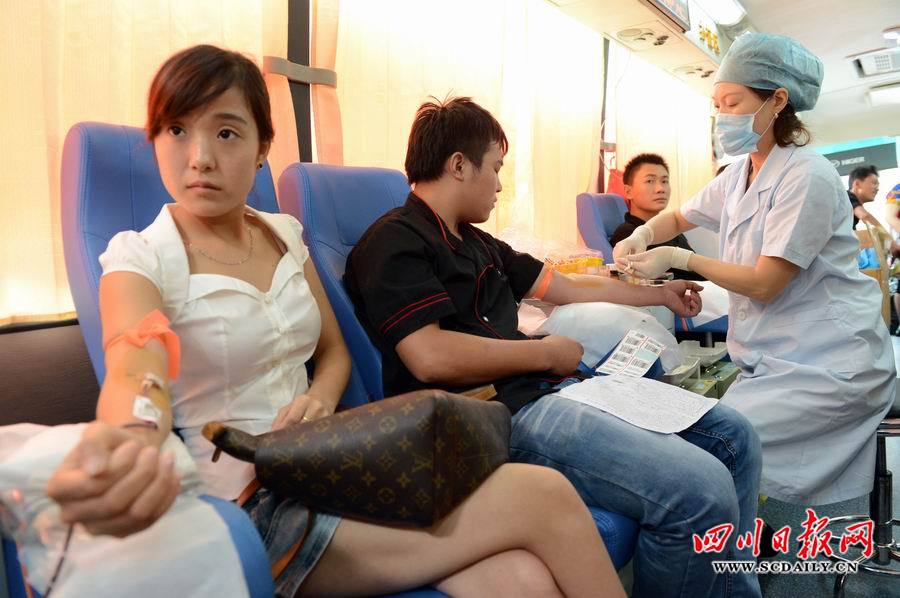 受暴雨天氣和放暑假的影響,連日來,成都市獻血人數急降,成都市血液中心各種血型出現緊張現象。7月23日,當得知成都市血液中心血庫出現緊張現象后,成都市武侯區玉林街道辦倪家橋社區黨委、武侯區玉林街道辦倪家橋社區區域化黨委聯合開展“共筑中國夢、志愿我現行”無償獻血活動,組織位于該轄區的四川省開元集團、四川匯力農資連鎖有限公司、禾風料理、何日君溫泉酒店等13家企業120名員工來到成都市血液中心積極鮮血,當天共獻出了2萬毫升鮮血。(四川日報記者 李向雨 攝影報道)