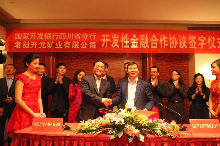 2012年11月14日下午,亞洲鉀肥集團有限公司所屬的老撾開元礦業有限公司(簡稱老撾開元)與國家開發銀行四川省分行在凱賓斯基飯店舉行開發性金融合作協議簽字儀式。國家開發銀行四川省分行黨委書記、行長王中,副行長彭忠,集團董事長、老撾開元董事長趙思儉、副總裁余曉波等領導代表出席了簽字儀式。