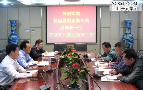 4月16日,四川省國稅局直屬分局潘局長一行親臨開元集團進行現場調研,與集團董事長、總裁趙思儉,集團董事等進行了會談。